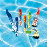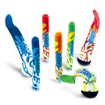 Griffsympatische Neopren Tauchlinge, die unter Wasser immer geradeaufstehen, damit das Greifen zum Kinderspiel wird. Set bestehend aus 4 Fingertauchlingen Länge ca. 20 cm und 3 Schweif-Tauchlingen.