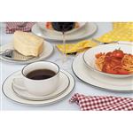 Echtes Porzellan mit zeitlosem, schwarzem Rand. Klassisch von Angelo Fortuna für moderne Ästheten. Je 6 Teller flach Ø 26 / 19 cm, 6 Suppenteller Ø 20 cm, sowie 6 Tassen à 220 ml und dazugehörigen Untertellern Ø 15 cm. Für Spülmaschine und Mikrowelle geeignet.