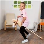 Klassisches Steckenpferd mit Geräusch- und Bewegungsfunktion für Ausritte zu Hause oder unterwegs, inkl. Zaumzeug. Auf Knopfdruck am Ohr mit Wieher- und Galoppiergeräuschen - wie echt. Grösse 100 x 25 cm. Batteriebetrieben. Ab 3 Jahren.