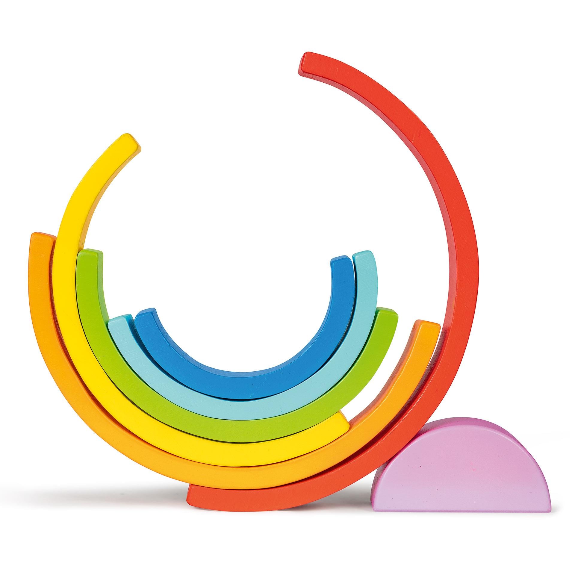 Das Stapel Bogenspiel ist ein sehr vielseitiges Spielzeug auch für die Kleinsten geeignet. Zum Stapeln und Bauen von Tunnel, Brücken oder auch Bögen. Die Kinder lernen beim Spielen erste Formen, Farben und Grössen zuordnen. Fördert konstruktives Denken. Grösse roter Bogen 24 x 12 x 3,5 cm.