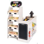 Die verfügbaren Scanner und Kreditkartenleser vom Kaufmannsladen wurden zudem mit Tönen ausgestattet, die das Spielerlebnis zusätzlich verbessern. Kleine Kaufleute können sich ausserdem über ein Förderband freuen, das sich mittels eines Drehrads bewegen lässt. Damit laufen die eingekauften Spielwaren wie in einem echten Lebensmittelmarkt über das Fliessband im Kassenbereich. Seitliche Haken bieten Platz zum Aufhängen von Einkaufstaschen und auf der vorderen Tafel können Kinder aktuelle Angebote mit Kreide vermerken.