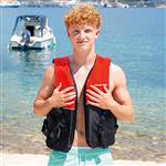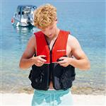 Die Schwimmweste für Erwachsene von der Marke Marlin entspricht der Norm DIN EN ISO12402-5 und ist ideal für Körpergrössen L bis XL einsetzbar. Der Auftrieb liegt bei dieser Schwimmweste bei 50/60 N und ist für ein Körpergewicht von über 70 kg geeignet, weshalb sie ausschliesslich als Schwimmhilfe und nicht als Rettungsweste anzusehen ist. Der Brustumfang kann bei dieser Weste zwischen 114 und 145 cm liegen. Sie verfügt über insgesamt 3 Feststellgurte, die mittels Klickverschluss eingerastet werden. Mit einfachen Handgriffen kann hier die Grösse exakt auf die körperlichen Gegebenheiten angepasst werden, was sowohl für den Brust- als auch für den Bauchbereich gilt. Die Schwimmhilfe ist im Bauchbereich in einem Schwarzton gehalten, während der obere Bereich ein leuchtendes Rot aufweist. Diese Warnfarbe hilft im Notfall schnell im Wasser erkannt zu werden. Die Schwimmweste sollte nur in Ufer-, Küstennähe oder in Bereichen eingesetzt werden, wo im Ernstfall schnelle Rettung gewährleistet ist.