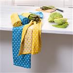 Frischfreche Farbdesignkreationen bringen mehr Freude in die tägliche Hausarbeit. Keine graue Massenware, sondern Farbfrische und Lebensfreude, gönnen Sie sich das. 100% saugstarke feste Baumwolle, in attraktiven Angelo Fortuna Designs. Waschbar bis 40 Grad. Frühlingsfrische Farbgebung mit eingewobenen Pünktchen. 4 Stück à 45 x 80 cm.