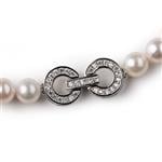 7 – 7,5 mm, perfekt rund, weisser Lüster, 925 Silber Verschluss mit Kristallsteinen, Perlen einzeln geknotet. Länge inkl. Verschluss: 46 cm.