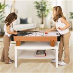 Puck anstossen und losspielen! Beim beliebten Airhockey Tischspiel trittst du gegen einen Freund oder eine Freundin an – wer zuerst 10 Tore schiesst, gewinnt. Dank des eingebauten 12V-Ventilators, der von unten Luft durch feine Löcher pustet, gleitet der Puck blitzschnell über das Spielfeld. So saust die Spielscheibe fast wie von allein hin und her – und das Spiel bleibt spannend bis zum letzten Treffer. Die stabile Holzkonstruktion passt super ins Kinderzimmer und sorgt dort für jede Menge Action. Mit den eingebauten Punktezählern für beide Spieler könnt Ihr die Tore ganz leicht mitzählen – von 0 bis 9. Zum Set gehören 2 Pusher und 2 Pucks, damit das Spiel direkt starten kann. Airhockey Tischspiel von BEA Toys, Grösse 101,5 x 51 x 21 cm. Lieferung inkl. Netzstromadapter. Ab 3 Jahren.
