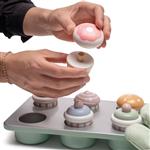 Back dir deinen eigenen süssen Traum! Mit den Holzspiel Muffins mit Backform kannst du in deiner Spielküche 6 leckere Cupcakes zaubern – ganz ohne Ofen. Dazu gibt’s eine passende Backform, einen kleinen Servierteller und einen weichen Ofenhandschuh – damit spielst du wie eine echte Bäckerin. Ob für deine Puppen, deine Freunde oder dein Kuscheltier: alle werden begeistert sein von deinen süssen Kreationen. Und nach dem Backen wird natürlich auch serviert! Alles ist aus schönem, farbigem Holz gemacht und extra robust. Grösse Backform 24 x 15 x 4 cm. Ab 3 Jahren.