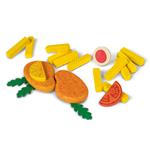 Schnippo für kleine Küchenchefs! Mit dem Holzspiel Schnitzel & Pommes von Erzi kommt Stimmung auf den Spielteller! Das liebevoll gestaltete Set enthält 2 goldbraune Schnitzel mit Zitronenscheiben, eine grosse Portion Pommes, eine halbe Tomatenscheibe, Salatblätter und ein Ei – alles aus stabilem Holz gefertigt. Die Zutaten lassen sich realistisch anrichten, servieren oder auf einem Tablett präsentieren. Perfekt für Rollenspiele in der Spielküche oder Spielrestaurant. Die kindgerechten Grössen sind leicht greifbar und sorgen für stundenlangen Spielspass rund ums Thema Lieblingsessen. Ein ideales Geschenk für kleine Foodies, die sich schon immer mal eine Schnitzelparty machen wollten. Holzspiel Schnitzel & Pommes 20tlg., Grösse Holzschnitzel 8 x 5 cm. Ab 3 Jahren.