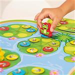 Fang die Fliege, bevor sie dir entwischt! Im Froschspiel mit Magnetfliegen hüpfst du über den Seerosenteich und versuchst mit deinem farbigen Frosch möglichst viele passende Fliegen zu schnappen. Wer die gewürfelte Farbe richtig erkennt und sich die Fliegen gut merkt, sammelt Punkte auf der eigenen Froschmatte. Die magnetischen Fliegen haften auf den Fröschen und sorgen für ein spannendes Spielerlebnis mit Überraschungseffekt. Ein lustiges Farbspiel von Beleduc für flinke Augen und schnelle Reaktionen. Inhalt: 4 Frösche, 24 Fliegen mit Magnet, 12 Fliegen ohne Magnet, 4 Spielermatten, 1 Farbwürfel, Anleitung. Spielmatte Grösse Ø 52 cm. Für 2 – 4 Spieler ab 3 Jahren.