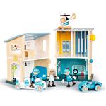 Verfolgung, Verhaftung, Abenteuer – hier bestimmst du das Gesetz! Mit dem Polizeistation Holzspielset bist du bereit für spannende Einsätze: Aufklappen und in zwei Gebäuden spielen – oder hochstapeln und einen grossen Polizeiturm bauen. Drinnen warten Zellen, Büros und eine Einsatzzentrale auf deine Entdeckung. Mit dem Polizeiauto, Motorrad, Helikopter und den Figuren geht’s auf Verfolgungsjagd, während der Gauner sicher im Gefängnis landet. Alles aus Holz gefertigt und mit bunt bemalt. Das Zubehör bringt Action und kreative Rollenspiele direkt ins Kinderzimmer. Du entscheidest, wie dein Polizeitag abläuft – ob Ermittlungen, Verhöre oder Verfolgung! Polizeistation Holzspielset, Grösse geschlossen 26 x 17 x 23,5 cm, mit 1 Helikopter, 2 Fahrzeugen, 3 Figuren und vielfältigem Zubehör, insgesamt 26 Teile. Ab 3 Jahren.