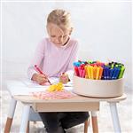 Grossflächig, bunt und kreativ! Das Filzstiftset ist ideal für Kinder, die gerne farbenfroh und gross malen. Die Stifte haben eine breite Spitze, mit der du grosse Flächen ganz leicht ausmalen kannst – ideal für Kindergarten, Gruppenräume oder gemeinsames Basteln. Die Farben sind intensiv, leicht aufzutragen und angenehm weich. Dank ihrer robusten Verarbeitung und der grossen Menge eignet sich dieses Set auch für Schulen und Betreuungseinrichtungen. Alle Stifte sind übersichtlich sortiert und lassen sich bequem entnehmen. Set mit 108 Filzstiften in 12 verschiedenen Farben, breite Spitze. Ab 3 Jahren.