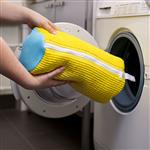 Schuhe waschen ohne Chaos! Unsere Premium Schuhwaschbeutel reinigen deine Schuhe gründlich in der Waschmaschine – ganz ohne Schrubben. Einfach in die Beutel reinlegen, Reissverschluss zu und waschen. Innen sorgen weiche, strukturierte Borsten für sanfte Reibung und unterstützen die Reinigung beim Waschgang. Dank der luftigen Wabenstruktur der Aussenhülle kann das Wasser problemlos reinfliessen. Nebst der effektiven Schuhreinigung schützen die Waschbeutel die Maschine, indem sie verhindern, dass sich Schnürsenkel verheddern. Lieferung 2 Beutel für 2 Paar Schuhe. Grösse je 34 x 21 x 10 cm.
