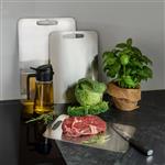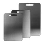 Wenn Qualität zählt: Diese Schneidebretter verbinden Hygiene mit Funktionalität. Die Küchenbretter aus Edelstahl sind rostfrei, pflegeleicht und beständig gegenüber Verfärbungen oder Gerüchen. Sie lassen sich dank glatter Oberfläche einfach reinigen, sind spülmaschinenfest und antibakteriell – perfekt für hygienisches Arbeiten in der Küche. Gleichzeitig schonen sie die Klingen deiner Messer und sind ungiftig. Eine umweltbewusste Alternative zu Kunststoff oder Holz. Ideal für Fleisch, Fisch, Gemüse oder Obst. Küchenbretter rostfrei Edelstahl, Grösse: 2 Bretter à 20 x 29 cm und 1 grosses Brett à 23 x 34 cm.