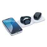 Nie mehr Kabelsalat! Mit dem faltbaren 3in1 Wireless-Ladegerät wird das Laden deiner Geräte super einfach und elegant. Du kannst gleichzeitig dein Smartphone, deine iWatch und deine AirPods aufladen – ganz ohne Kabel. Das Ladegerät lädt dein Handy mit bis zu 15W im magnetischen Schnelllademodus, deine Watch mit 2,5W und deine AirPods mit 3W. Es ist faltbar, platzsparend und perfekt für unterwegs. Die Magnetfunktion sorgt dafür, dass alles genau dort bleibt, wo es hingehört. Ideal auch für den Schreibtisch oder Nachttisch. Kompatibel mit allen Geräten, die den Qi-Standard unterstützen. Einfach aufklappen, anschliessen und losladen. 3in1 Wireless-Ladegerät, Material ABS + Silikon. Kann auch als magnetischer Smartphone Halter dienen. Grösse 24,7 x 7,45 x 0,75 cm. Inkl. USB-C-Ladekabel und Anleitung in 3 Sprachen.
