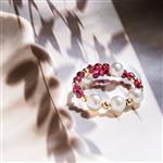 Klassisch und markant – dieser Fingerring verbindet den sanften Schimmer von Perlen mit der tiefroten Intensität facettierter Granatsteine. Die weissen Perlen harmonieren perfekt mit den edlen, dunkelroten Edelsteinperlen, während vergoldete Elemente den luxuriösen Gesamteindruck unterstreichen. Die facettierten Granate fangen das Licht ein und setzen einen kräftigen Farbakzent, der jedem Outfit Charakter verleiht. Dank elastischer Fassung trägt sich der Ring angenehm und passt sich flexibel verschiedenen Fingergrössen an – praktisch, wenn du ein Geschenk auswählst, ohne die genaue Ringgrösse zu kennen. Ob für dich selbst oder als besondere Aufmerksamkeit – dieses Schmuckstück steht für zeitlose Eleganz. Grösse der weissen Perlen ca. Ø 5 mm.