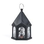 Mini LED Laterne mit Halloween Designs wie Katze auf leuchtendem Kürbis oder gruselige Vogelscheuche, assortiert geliefert, jeweils in Schwarz. Unsere Halloween Lämpchen sorgen an dunklen Abenden für gespenstische Stimmung. Die Party-Deko zeigt eine kleine, hexagonale Laterne mit schwarzem Aufdruck, welche mystisch und geheimnisvoll in orangem, warmem LED «Kerzen»-Licht leuchtet. Die kleinen Laternchen bestehen aus Kunststoff und sind ca. 11 cm hoch mit einem Durchmesser von 7 cm. Sie verfügen über eine Vorrichtung zum Aufhängen, sind daher auch als Kostümaccessoire bestens geeignet. Erleuchtet werden die Halloween Lichter mit Knopfbatterien, welche im Lieferumfang bereits enthalten sind.