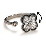 Dezent fokussieren, stilvoll auftreten. Der silberfarbene Fidget Ring mit Blume verbindet klaren Look mit diskreter Entlastung im Alltag. Entdecke den Anti-Stress-Ring – dein stilvoller Begleiter für mehr Ruhe im Alltag. Die drehbare Blüte lässt sich sanft rotieren und hilft dir, die Aufmerksamkeit zu bündeln, wenn es hektisch wird. Das kühle Silberfinish wirkt modern und zurückhaltend – klare, facettierte Steine setzen feine Akzente. Ideal für unauffällige Nutzung in Meetings, im Zug oder in Wartezonen. Ein edles Schmuckstück mit Zusatznutzen: Verwende die Rotation, wenn du fokussieren und deinen Geist beruhigen möchtest.