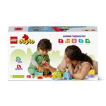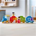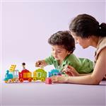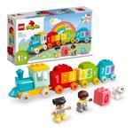 Der LEGO DUPLO Mein erster Zahlenzug – Zählen lernen kombiniert farbenfrohen Spielspass mit ersten Lernerfahrungen. Mit 10 bunten Zahlensteinen zum Auf- und Abladen, Stapeln und Sortieren sowie 3 DUPLO Figuren (Junge, Mädchen und Hund) entdecken Kinder spielerisch die Welt der Zahlen und können ihrer Fantasie freien Lauf lassen. Die Kleinen haben viele Möglichkeiten, kreativ zu werden: Sie können die Zahlensteine auf die Waggons setzen, wieder abladen, in der richtigen Reihenfolge aufstellen oder zu einer grossen Zahlenwand stapeln. Der Zug verfügt über drehbare Räder und ein aufklappbares Dach und lädt zusammen mit den freundlichen Figuren zu spannenden Rollenspielen und fantasievollen Abenteuern ein. So wird jedes Spiel zu einer entwicklungsfördernden Reise voller Entdeckungen.