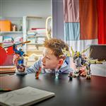 LEGO NINJAGO Rogues Mech-Drachenreiter lässt Jungen und Mädchen ab 8 Jahren Geschichten aus der 3. Staffel der TV-Serie NINJAGO Aufstieg der Drachen nachstellen. Kinder können zunächst mit dem Spielzeugmech und dem allerersten NINJAGO Roboterdrachen spielen, und die beiden Spielzeugfiguren dann zu einer megastarken Actionfigur kombinieren – Rogues Mech-Drachenreiter. Der Spielzeugmech hat bewegliche Arme und Beine sowie eine aufklappbare Brust, in die eine Minifigur und ein Schwert hineinpassen. Der Drache kann Flügel, Beine und Kiefer sowie Kopf und Schwanz bewegen und schwingt ein Schwert. Auch 4 Minifiguren laden zum Spielen ein: die beiden Ninja Rogue und Arin sowie Rox und ein böser Geisterdrachenkämpfer. Die beiden Bösewichte haben ein Banner mit einer geheimen Botschaft, die nur mit Arins Enthüllungsklinge entschlüsselt werden kann. Kinder können die Mechs aus den beiden separat erhältlichen Sets Kais Sturmreiter-Mech und Kais Mech-Bike EVO auf dem Rücken des Drachen aus diesem Set befestigen. Die Modelle aus diesem Spielset können auch mithilfe der LEGO Builder App gebaut werden. Die App nimmt dich und dein Kind auf ein tolles Bauabenteuer mit.