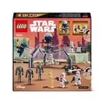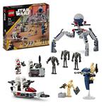 Lass Kinder ab 7 Jahren Actionszenen aus Star Wars: The Clone Wars mit dem LEGO Star Wars Clone Trooper & Battle Droid Battle Pack nachstellen. Es liegt bei deinem Kind, wer diese Schlacht gewinnt! Dieses Action-Spielzeug beinhaltet 4 LEGO Star Wars Minifiguren und 5 LEGO Droiden – einen Clone Shock Trooper, 3 Clone Troopers, 3 Superkampfdroiden und 2 Kampfdroiden mit legendären Waffen für ein spannendes Spielerlebnis. Ausserdem gibt es ein Star Wars Speeder Bike mit Shooter für 2 Clone Troopers sowie einen baubaren STAP-Speeder für einen Kampfdroiden. Ein Tri-Droide mit 3 Shootern sowie ein Verteidigungsposten mit Shooter bieten noch weitere kreative Spielmöglichkeiten. In der LEGO Builder App findest du digitale Bauanleitungen sowie Vergrösserungs- und Drehfunktionen zum Betrachten der digitalen Modelle, die deinem Kind ein noch faszinierenderes Bauerlebnis bieten. Die Figuren und Modelle aus diesem eigenständigen beliebten Spielzeugen lassen sich auch wunderbar mit den anderen separat erhältlichen LEGO Star Wars Sets aus der umfangreichen LEGO Star Wars Produktreihe kombinieren.