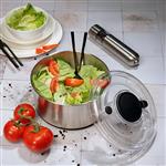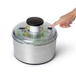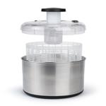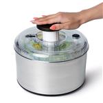 Pump, dreh, trocken – Salatgenuss in Sekunden! Die Salatschleuder mit komfortabler Pumpmechanik bringt deine Salatblätter und Kräuter mit einer Handbewegung auf Touren und stoppt dank cleverer Stopptaste punktgenau. Der rutschfeste Silikonboden hält stabil, während der transparente Deckel dir die Kontrolle lässt. Der Korpus aus lebensmittelechtem Edelstahl ist robust, innen sorgen Kunststoff-Sieb und Spinner für effizientes Schleudern. Die gleichmässige Rotation trocknet, ohne die Blätter zu quetschen. Zum Schluss lässt sich alles leicht reinigen, damit du schneller wieder geniessen kannst. Pump Salatschleuder Edelstahl von Angelo Fortuna, Grösse Ø 23 x 20 cm, Volumen 4,7 Liter. Material: BPA-frei.