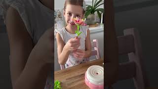 DIY Blumenstrauss Spielset mit rosa Blumenpresse, vielen bunten Blütenblättern, grünen Stielen