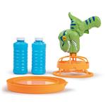 Bereit für die Seifenblasen-Party! Mit dem Dino Seifenblaster zauberst du ruckzuck ganze Wolken aus schillernden Seifenblasen oder Seifenblasen in Seifenblasen. Einfach den Ring eintauchen, Schalter drücken und staunen: Der grüne Dino pustet ununterbrochen viele Blasen. Die Bedienung ist kinderleicht und macht riesig Spass. Seifenblasenmaschine Dinosaurier, batteriebetrieben, aus Kunststoff, Grösse 24 x 15 x 17 cm. Lieferung inkl. Schale und 2 x 250 ml Seifenblasenlösung. Ab 3 Jahren.