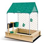 Spielen, matschen, gärtnern – alles an einem Ort! Das Sandkastenhaus von Hape vereint Buddelkiste, Kaufladen und Mini-Garten in einem vielseitigen Outdoor-Set. Unter dem wasserdichten Dach bleibt der Spielbereich schattig, an der Netzwand hängst du Töpfe oder Spielzeuge ein und die Tafelfläche lässt sich mit Kreide gestalten – Menü, Preise oder Schatzkarte, du entscheidest. Der Tresen wird im Nu zur Küche, Werkbank oder Verkaufstheke und es entstehen neue Rollenspiele. Sandkastenhaus, Grösse 120 x 92 x 125 cm. Lieferumfang: Sandkasten mit Unterlage und Dach, Netzwand, 2 Blumentöpfe, Kunststoffbehälter, Sandspielzeug. Material: Holz, Metall und pflanzlicher Kunststoff, Lieferung inkl. textiler Sandunterlage. Ab 2 Jahren.