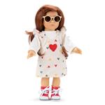 Beiges Puppen-Kordkleid-Set mit Herzchen-Print und Rüschen, inklusive passendem Sweatshirt und Sonnenbrille
