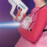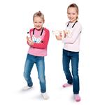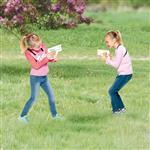 Licht aus – fertig, Action! Mit diesem Laserset kann man sich mit Freunden spannende Duelle liefern – verstecken, zielen, treffen! Die Pistole sendet Infrarotstrahlen, der Sensor auf der Brust reagiert mit Licht und Vibration. Nach 8 Treffern ist das Spiel vorbei und der nächste Durchgang kann starten. Ideal für actionreiche Battles zu zweit – drinnen oder draussen. Laserspielset mit Zielsensor, bestehend aus 2 Pistolen (je 2 AA-Batterien) und 2 Brustsensoren (je 3 AA-Batterien), die mit verstellbaren Riemen bequem umgehängt werden. Grösse Pistole/Sensor: 18 x 14 x 3 cm / 15 x 11 x 3 cm. Ab 6 Jahren.