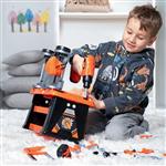 Mit diesem tollen Werkzeugkoffer können kleine Handwerkerinnen und Handwerker nach Herzenslust werkeln und ausprobieren. Der coole Akkuschrauber (batteriebetrieben) sorgt dabei für richtig viel Spass, wie bei den Grossen! Der 2in1 Koffer lässt sich im Handumdrehen in eine kleine Werkbank umbauen und ist perfekt, wenn du ihn platzsparend verstauen oder zu Freundinnen und Freunden mitnehmen möchtest. Zum Kinderwerkzeug-Set gehören viele spannende Werkzeuge und Zubehörteile wie Säge, Hammer, Schraubenzieher, Zangen, Gabelschlüssel, Bohrer, Schutzbrille, Atemmaske und natürlich jede Menge Schrauben und Lochplatten, die du zusammenbauen kannst. Werkzeugkiste Grösse: ca. 35 x 22 x 30 cm. Inhalt: 65 Teile, alle aus Kunststoff. Ab 3 Jahren.