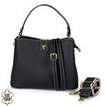 Schwarze Leder-Handtasche «Savona» mit weisser Ziernaht, goldenem Reissverschluss und drei austauschbaren Schulterriemen