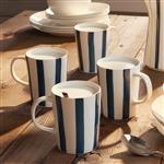 Streifenlook für deinen Tisch – frisch, lässig und alltagstauglich. Die blau-weiss gestreifen Keramik-Tassen von Angelo Fortuna begleiten dich vom Frühstück bis zur Pause und eignen sich für Kaffee, Tee, Kakao oder Milch. Die Form liegt dank grossem Henkel angenehm in der Hand, das robuste Material ist pflegeleicht und alltagstauglich. Das maritime Dekor harmoniert mit modernem wie klassischem Geschirr – so deckst du im Nu einen stimmigen Tisch für Familie und Gäste. Keramik-Tassen, Grösse Ø 8,5 x 11,2 cm, Fassungsvermögen 350 ml.