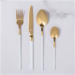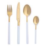 Zeit für Glanz auf deinem Tisch! Mit dem stilvollen Tafelbesteck aus vergoldetem Edelstahl bringst du Eleganz in jede Mahlzeit. Das goldfarbene Design in Kombination mit weissen Griffen sorgt für einen edlen Look – perfekt für festliche Anlässe oder einfach, um deinen Alltag etwas glanzvoller zu gestalten. Jedes Messer ist mit dem kleinen Engel-Logo von Angelo Fortuna in Weiss graviert. Die Besteckgarnitur eignet sich für 6 Personen und besteht aus Löffeln, Gabeln, Messern und Teelöffeln. Das Messer misst in der Länge 23 cm. Geschirrspülmaschinenfest.