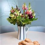 Streifenlook für deinen Tisch – frisch, lässig und alltagstauglich. Der blau-weiss gestreifte Keramik-Krug von Angelo Fortuna mit maritimem Flair für Frühstück, Brunch oder Gartenparty. Er eignet sich für Wasser, Säfte, Eistee, Milch oder auch als dekorative Blumenvase. Die klassische Form liegt gut in der Hand, der breite Stand sorgt für Stabilität, und das zeitlose Dekor harmoniert mit modernem wie traditionellem Geschirr. Du nutzt ihn zum Servieren am Tisch, stellst ihn als Wasserkrug aufs Buffet oder improvisierst eine kleine Vase für Blumen vom Markt, so entsteht im Nu ein stimmiger Look. Geschirrspülmaschinengeeignet. Krug mit Henkel, runder Fuss Ø 13 cm, Höhe 18 cm, Fassungsvermögen 1,3 Liter.