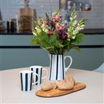 Krug in blau-weiss gestreiftem Design mit Henkel, runder Fuss Ø 13 cm, 18 cm hoch