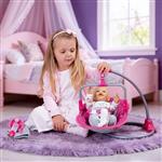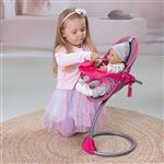 Wandelbarer 3in1 Puppenhochstuhl in Grau und Pink mit Schaukelfunktion und abnehmbarer Trageschale