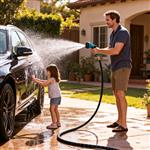 Entdecke den Flexi Pro Gartenschlauch von MAXTECH – Deine ideale Wahl für eine effiziente Gartenbewässerung. Dieser hochrobuste Schlauch ist extrem flexibel und passt sich mühelos an deine Bedürfnisse an. Bei Wasserdruck verlängert er sich imposant von 7,5 Meter auf bis zu 22,5 Meter Länge, so dass du jeden Winkel deines Gartens problemlos erreichen kannst. Wenn der Druck nachlässt, kehrt er zu seiner ursprünglichen Länge von 7,5 Metern zurück, was die Lagerung und den Transport erleichtert. Der Flexi Pro Gartenschlauch ist mit einer 10-fach verstellbaren Sprühdüse ausgestattet, die dir volle Kontrolle über den Wasserfluss ermöglicht, egal ob sanfter Sprühnebel oder kräftiger Wasserstrahl. Zusätzlich sind hochwertige Messing-Armaturen (½"- ¾") im Lieferumfang enthalten, die für eine ausgezeichnete Haltbarkeit und einen sicheren Wasseranschluss sorgen. Mit dem Flexi Pro Gartenschlauch wird Gartenpflege zum Vergnügen! Gesamtgewicht: 1,4 kg.