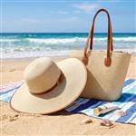 Sommerliches Set mit geflochtener Strandtasche und passendem Sonnenhut