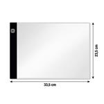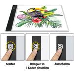 Licht an, Kreativität los! Das dimmbare LED Zeichenpad ist super, wenn du Vorlagen sauber abpausen, Skizzen übertragen oder kreative Ideen präzise ausarbeiten möchtest. Die gleichmässige LED Beleuchtung macht Linien und Motive gut sichtbar, während du die Helligkeit per Touch in 3 Stufen an deine Umgebung anpassen kannst. Ideal zum Zeichnen, Entwerfen, Basteln und für ruhiges Arbeiten am Tisch. Dank Micro USB Anschluss ist das Leuchtpad schnell einsatzbereit zu Hause oder unterwegs. LED Zeichenpad dimmbar A4, Acryl mit LED Lichtplatte, aktive Fläche 21 x 30 cm, Gesamtgrösse 23,5 x 33,5 x 0,35 cm.