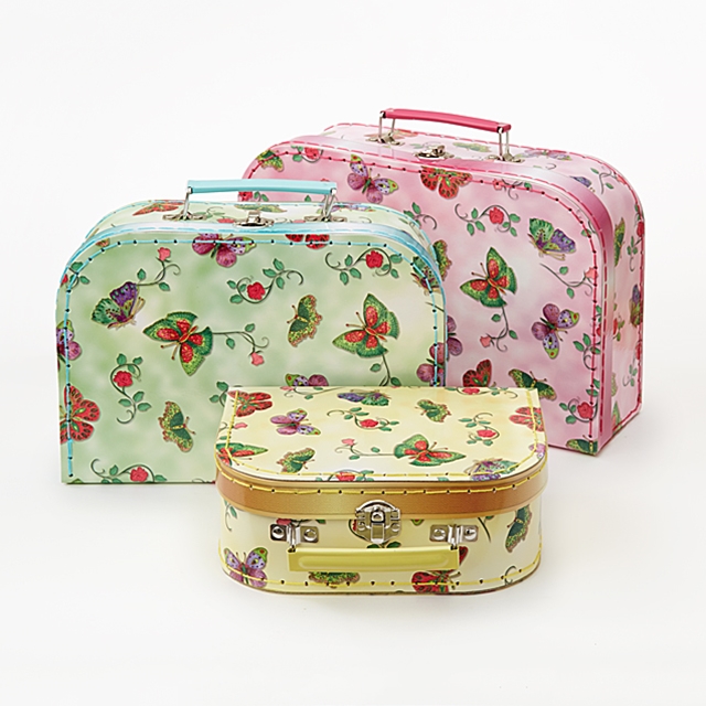 Frech fröhliche Designs in angesagter Form- und Farbgebung. Aus beschichtetem Hartkarton mit Bügel und Verschluss aus Metall. Mit farblich abgestimmten Bügeln. 3 Grössen im Set enthalten 30 x 20 x 9 cm, 25 x 18 x 8.5 cm und 20 x 14 x 8 cm.