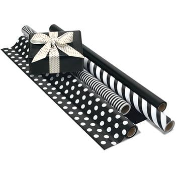 3 Super Rollen Geschenkpapier à 70 cm x 10 Meter in einer frischen Farbkombination, dazu 3 Rollen Geschenksbänder 1,5 cm x 5 Meter. Für bezaubernde Geschenkspakete mit modernem Flair.