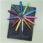 Praktische Box von Velazquez, gefüllt mit 48 Glitter Glue Stiften à 10 ml mit verschliessbarem Dosierkopf für genaues, kreatives Arbeiten. Die Glitter Glue Farben sind auswaschbar.