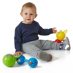 Les tout-petits seront ravis. Ces hochets crécelle multicolores font un cadeau parfait – succès garanti! Raffinés avec des animaux de la ferme en peluche. Chaque manipulation relève d’une petite expérience sensitive. Lancer et saisir favorise et renforce la motricité. Le tintement de la clochette à l’intérieur est clairement perceptible l’ouïe. Longueur hochet haltère 18 cm, ⌀ 8 cm, longueur hochet canard 16 cm, ⌀ 7 cm. Extérieur matière synthétique lavable très douce. Adapté à tout âge.