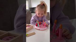 Pour fêter chaque jour un anniversaire. Tous les accessoires nécessaires à la confection de tourtes de fête pour jouer, comportant: 10 décors avec chiffres, 4 bougies, 4 fraises, 8 tourtes Ø 18 cm, plat à tourte, boîte de rangement 30 x 21 cm etc. Le tout en bois massif, partiellement en couleur.