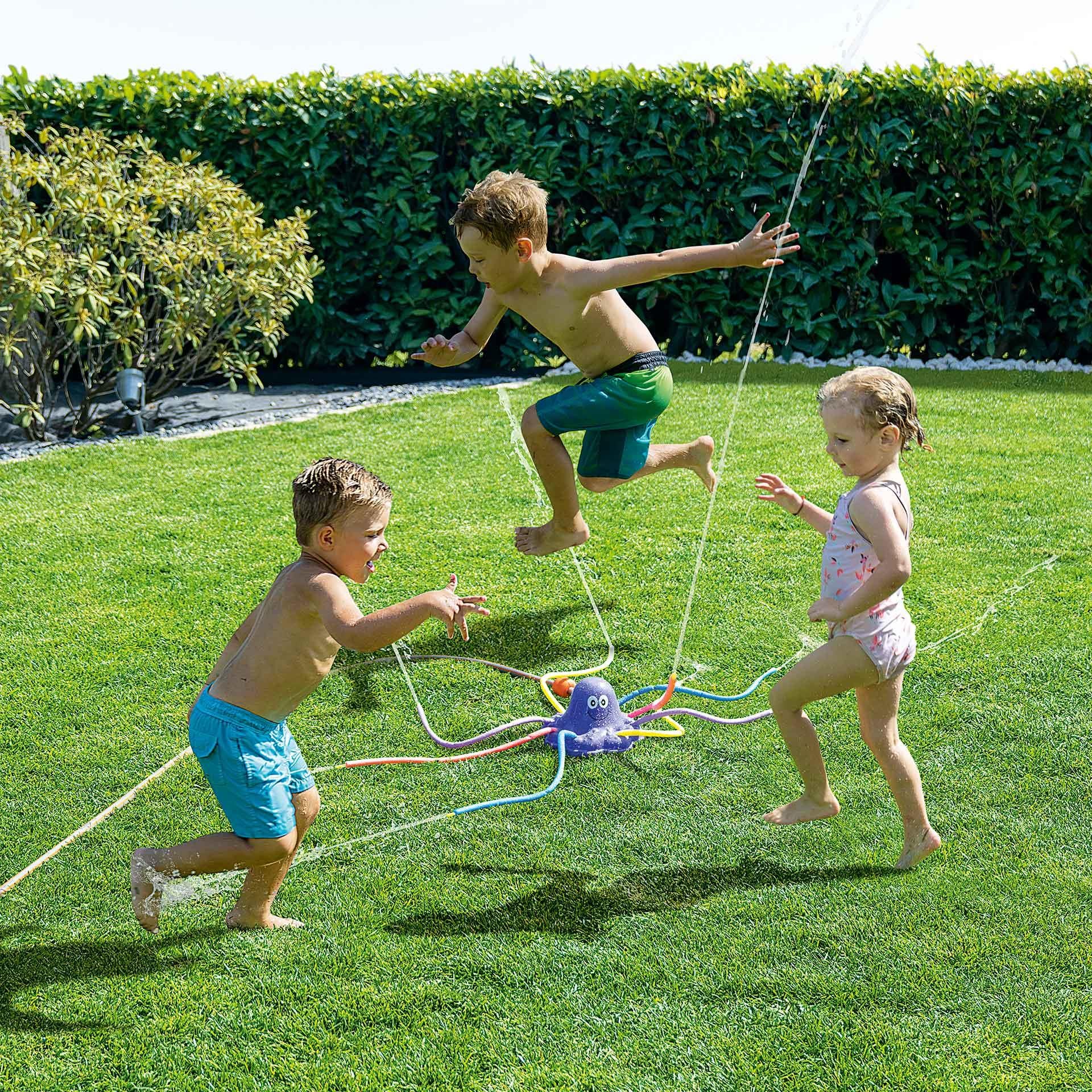 Plaisir à gogo pour qui aime garder la tête froide. Avec ses 8 tentacules auxquelles personne n’échappe, elle gicle de l’eau dans toutes les directions. Exécution en matière synthétique 21 x 21 x 14 cm, s’adapte à tous les tuyaux de jardin conventionnels.