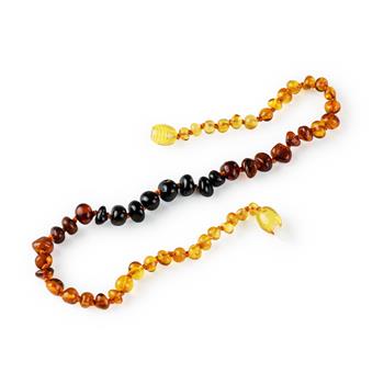 L’ambre est apprécié depuis des siècles pour sa beauté saisissante et ses propriétés bienfaisantes. Composé de véritables ambres baltes réputés pour leurs vertus apaisantes, ce collier est idéal pour votre bébé et peut aider à soulager les douleurs lors de la poussée dents. Les pierres précieuses de 4 à 6 mm, triées à la main, sont toutes fixées par un double nœud pour garantir la sécurité de votre enfant. Longueur de 33 cm, fermeture à vis.