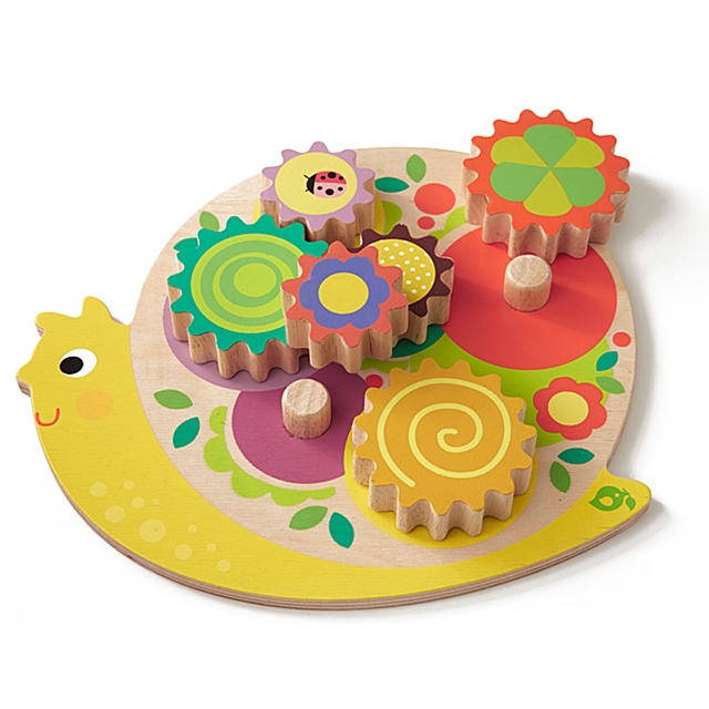Un jouet amusant pour développer la motricité et la coordination œil-main. Les éléments de l’engrenage peuvent être déplacés individuellement et réorganisés à volonté pour obtenir des effets de mouvement colorés. Bois massif et contreplaqué, multicolore. Taille de l’escargot env. 24x22 cm.