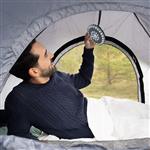 Cette lampe torche pour tente avec LED blanches puissantes illumine votre tente ou votre espace de détente d’une lumière claire et confortable. Le kit d’alimentation est constitué de 41 x 0,5W LED avec trois niveaux d’intensité. Très faible consommation d’énergie. 4 piles AA suffisent pour 30 heures d’éclairage. La durée de vie de la lampe LED est de plus de 100'000 heures. Boîtier argenté en plastique Ø 14 cm, avec crochet de fixation à l’arrière.