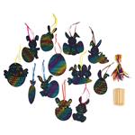 48 images à gratter selon ton bon plaisir avec 12 motifs de Pâques différents. Les parties à gratter scintillent de couleurs vives et variées à travers le revêtement. Plus on gratte, plus l'effet coloré est intense. Des rubans de soie en couleur permettent de suspendre ces petits chefs-d'oeuvre comme décorations. Un jeu comprend : 48 images à gratter (12 motifs à 4 pièces) 48 rubans de soie et 24 crayons à gratter en bois. Taille: env. 4 - 13 cm.