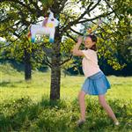 Ces sets pinata colorés en carton solide mettent de l'ambiance et de la joie dans les fêtes d'enfants. On suspend les figurines colorées, on bande les yeux des enfants et chacun à son tour frappe avec la batte en bois fournie pour en faire tomber le contenu. Celui-ci peut être choisi individuellement. Pour l'intérieur et l'extérieur, facile à préparer. Livré avec un bandeau coloré. Dès 3 ans.